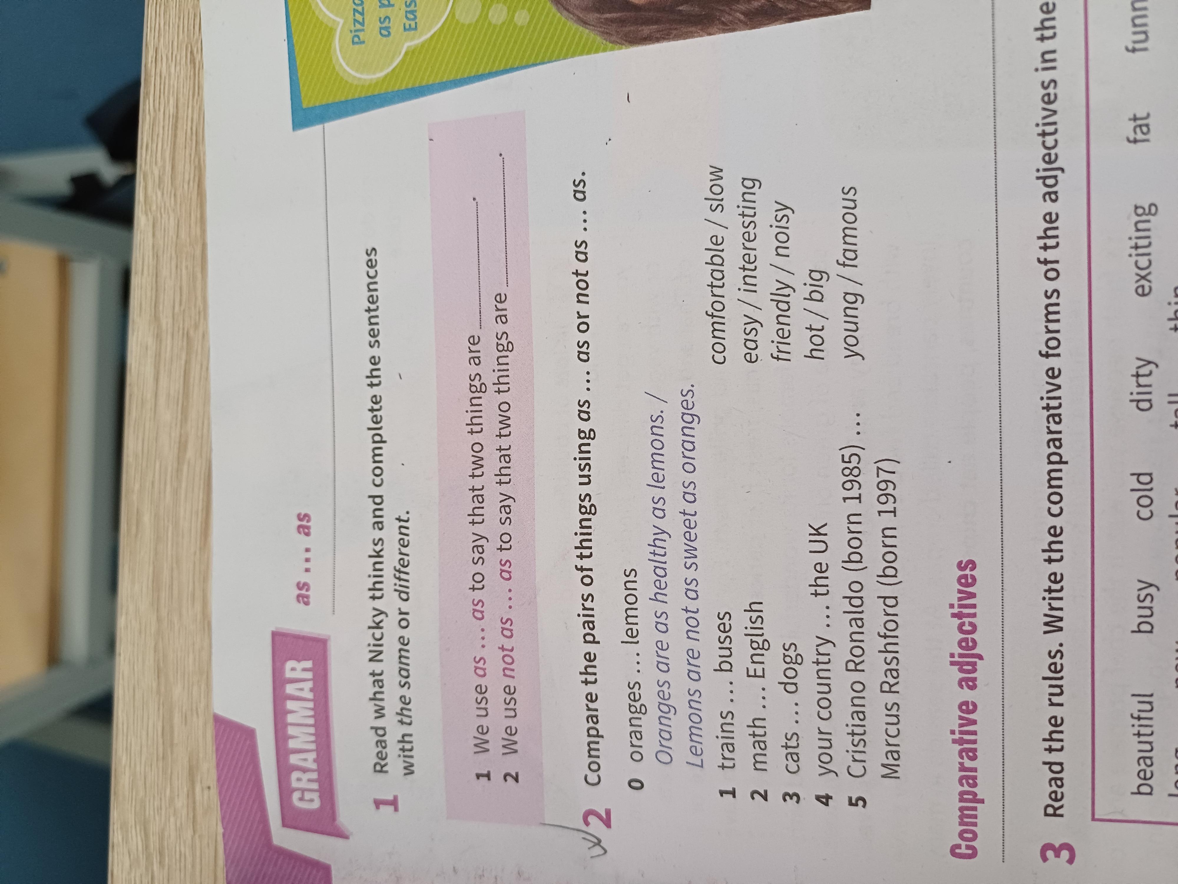 на первой странице предложения с первым прилагательным, а на второй со вторым и другой формой