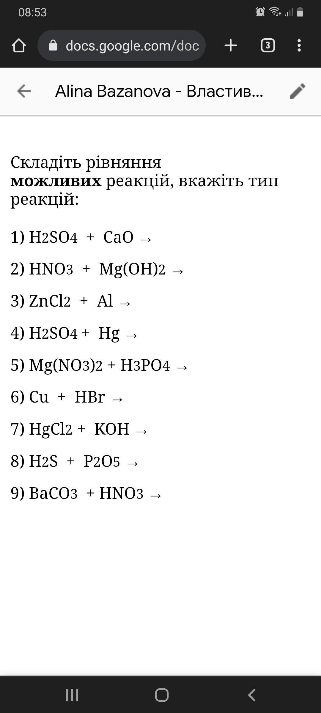 Складіть рівняння можливих реакцій, вкажіть тип реакцій: