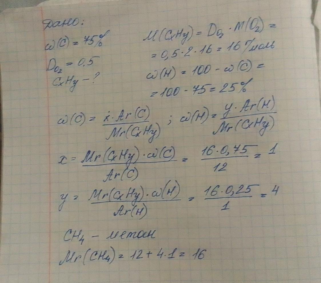 Знайдіть молекулярну формулу вуглеводню, якщо вміст Карбону у ньому 75%, а відносна густина за киснем 0,5.