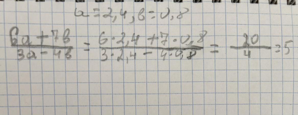 Найди значение алгебраического выражения 6a+7b/3a−4b, если