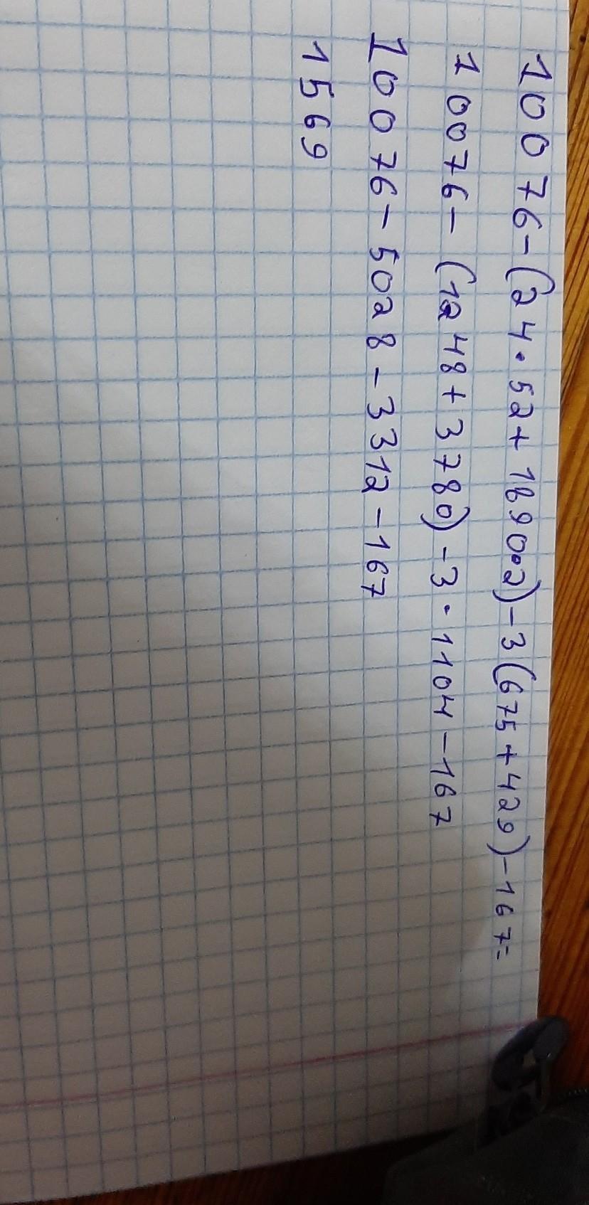 10 076 - (24•52 + 1 890•2) - 3 • (675+ 429) - 167