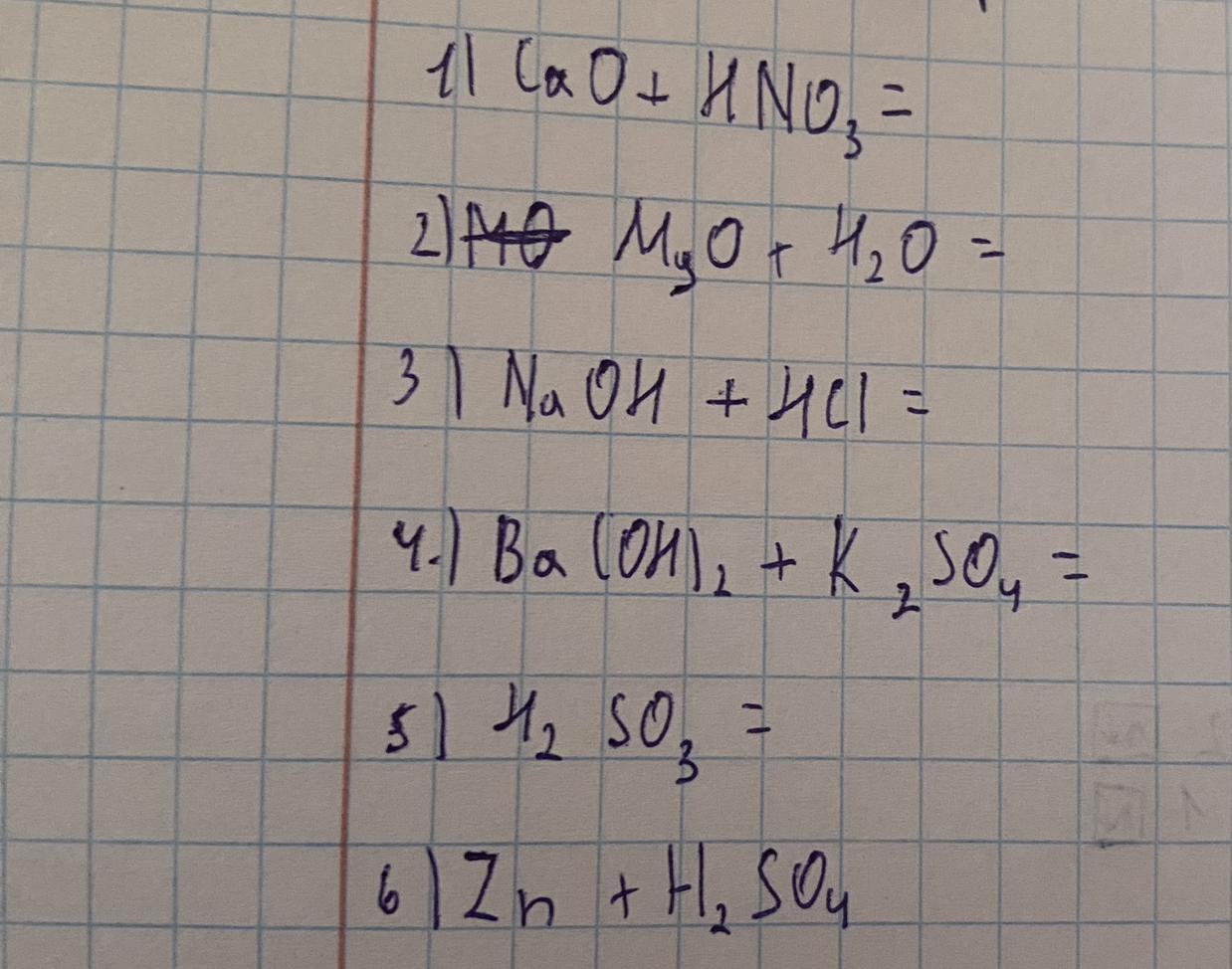 1)CaO + 2HNo3 → Ca(NO3)2 + H2O