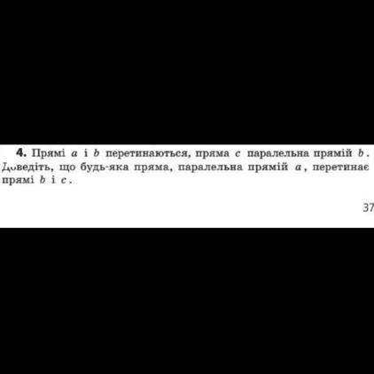 припустимо, що пряма, паралельна прямій а не перетинає прямі в і с, тоді виходить що вона паралельна прямим в і с, але ми знаємо, що якщо одна з пари паралельных прямих паралельна третій прямій, то й друга пряма паралельна третій прямій. отже, виходить що прямі в і с паралельні прямій а, але цього бути не може, бо вони перетинаються. тож наше припущення не вірно і пряма паралельна прямій а все ж таки перетинає прямі в і с, що і треба було довести