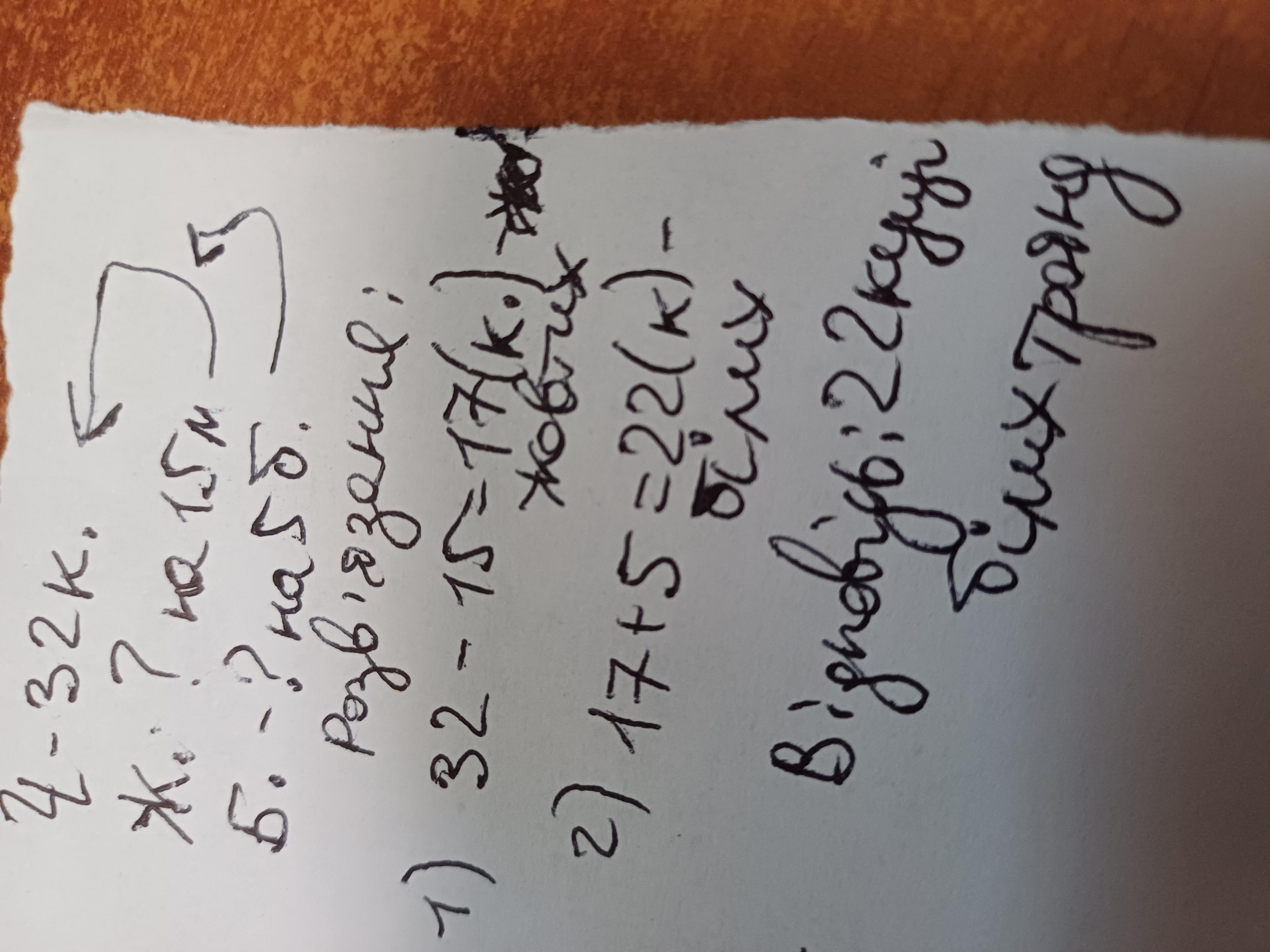 Для троядової алеї привезли 32 кущі червоних троянд,жовтих-на 15 кущів меньше,а білих-на 5 кущів більше ніж жовтих.Скільки кущів білих троянд привезли?