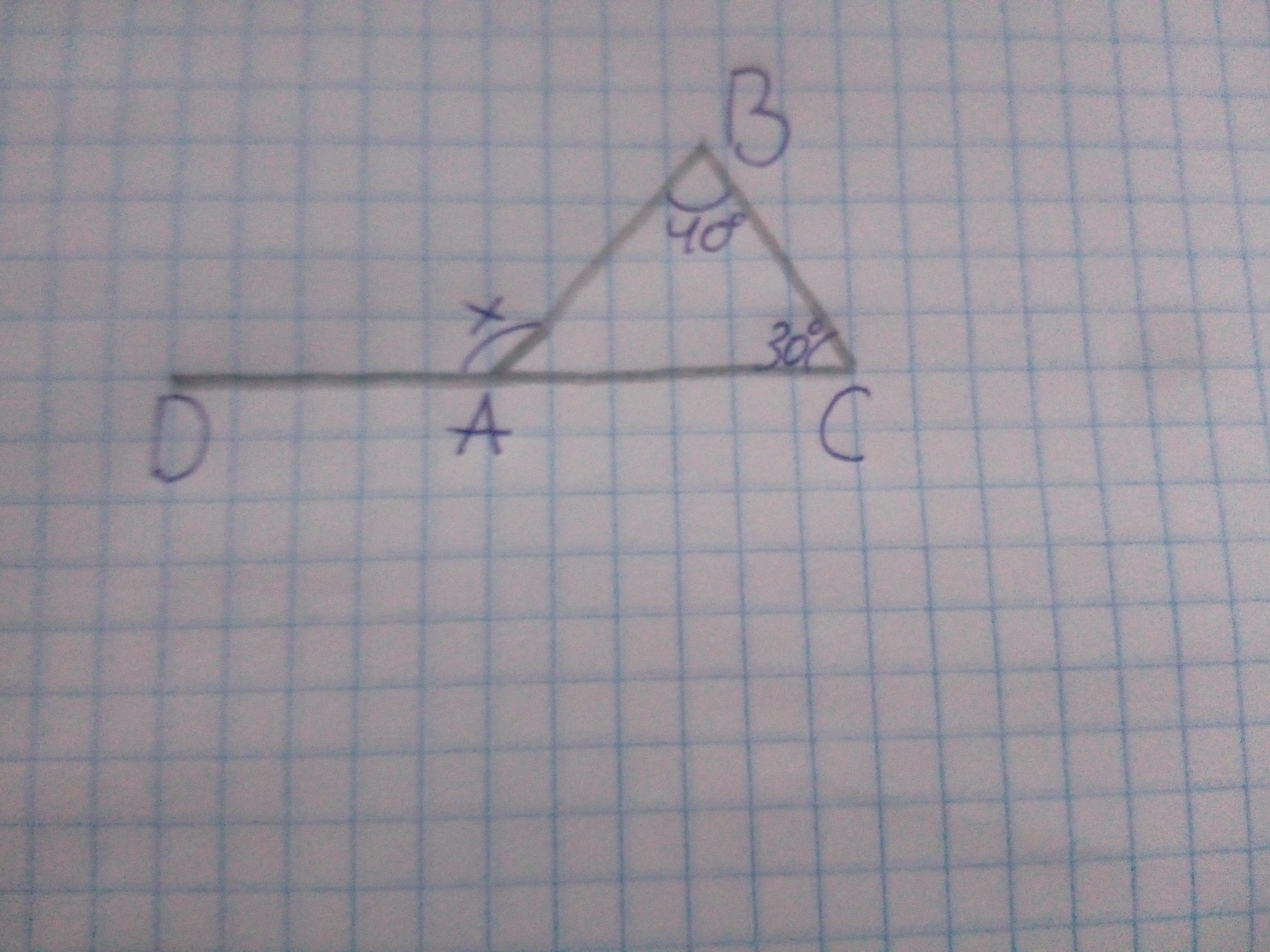 ∠ОАВ = х = ∠В =+ ∠С = 40° + 30° = 70° ; х = 70° .