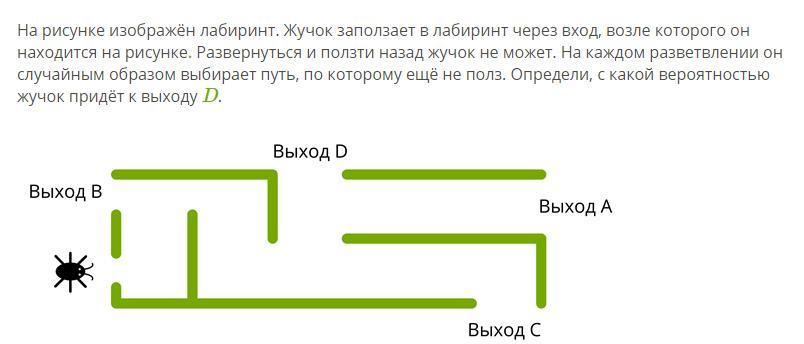 На рисунке изображён лабиринт. Жучок заползает в лабиринт через вход, возле которого он
