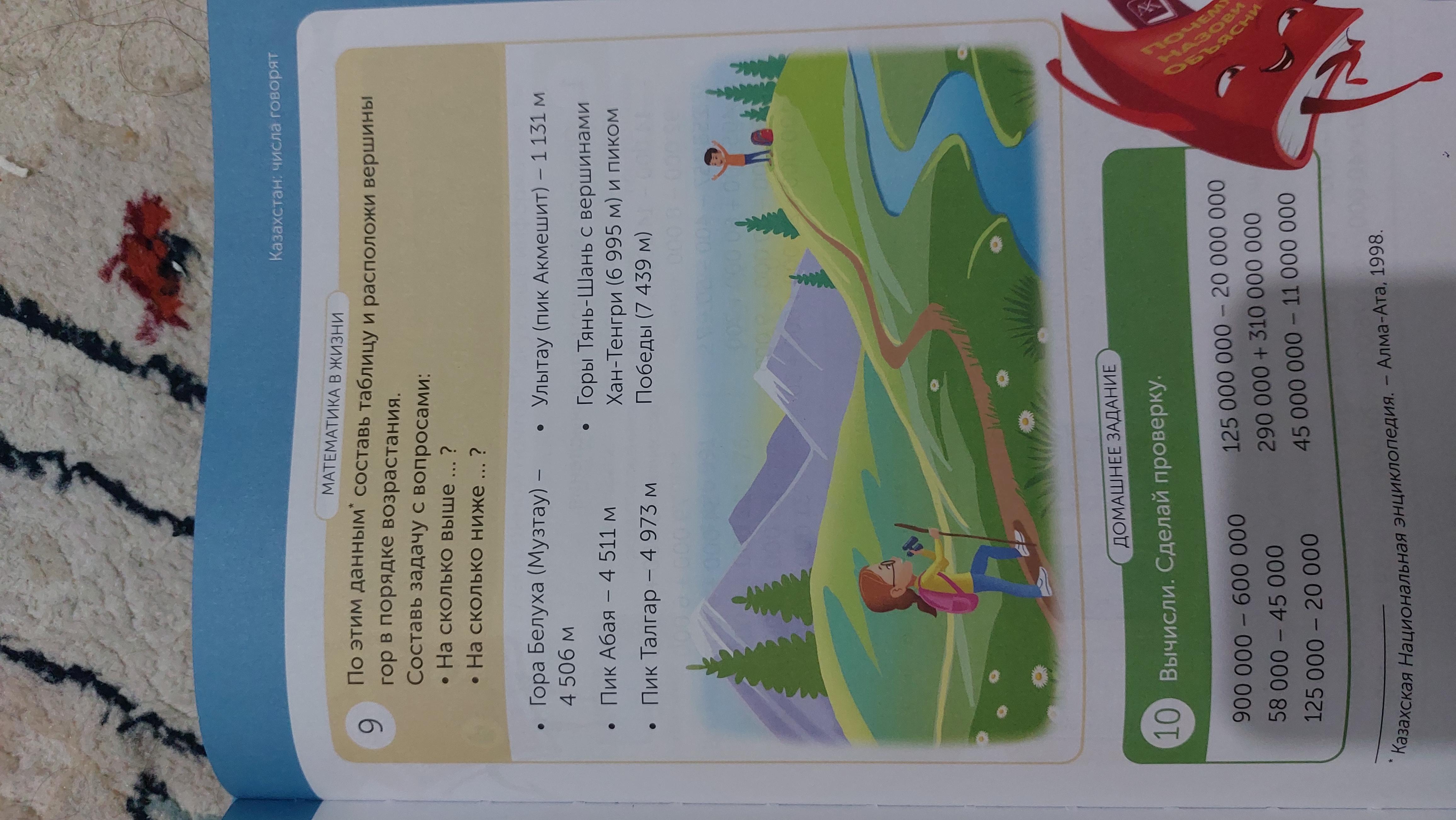 Посчитай насколько выше Пик Победы, если Пик Абая=4511метров, а Пик Победы=7439метров.