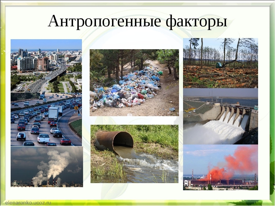 Изменения среды в связи с деятельностью человека. Сюда мы можем отнести выбросы заводов, загрязнение почв, воды, воздуха, применение ядовитых химических веществ
