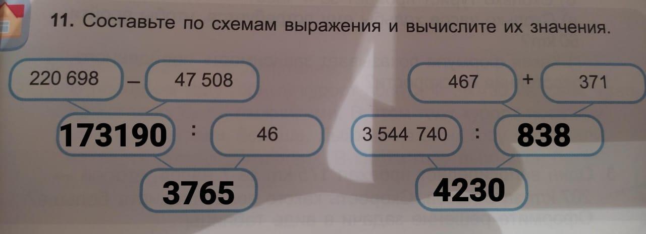 11. Составьте по схемам выражения и вычислите их значения. 220 698- 47 508 46 3 544 740 467 : + 371