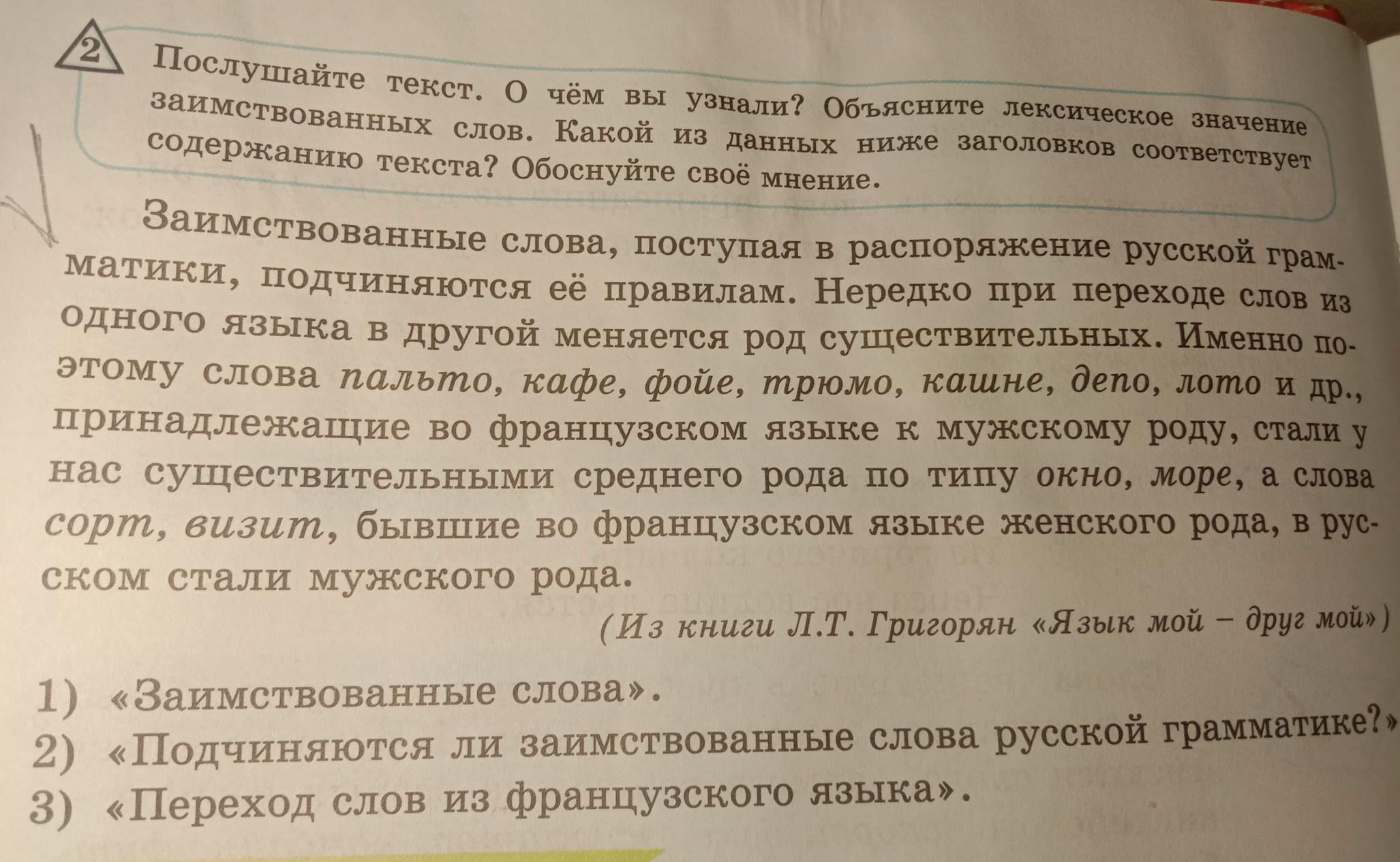 Послушайте текст. О чём вы узнали? Объясните лексическое значение заимствованных слов. Какой из данных ниже заголовков соответствует содержанию текста? Обоснуйте своё мнение.