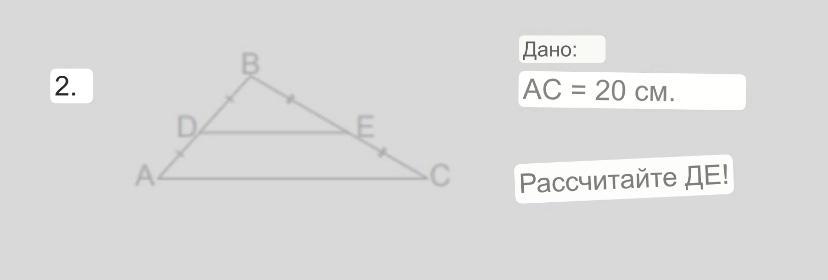 ДЕ = АС : 2 = 20 : 2 = 10 (см)