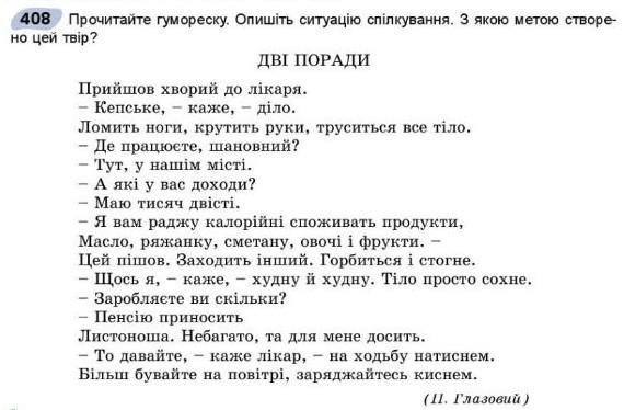Прочитайте гумореску. Опишіть ситуацію спілкування. З якою метою створено цей твір?