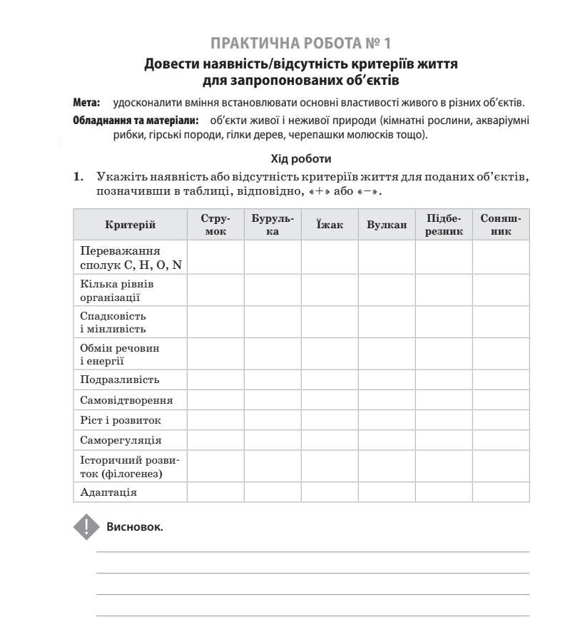 1. Укажіть наявність або відсутність критеріїв життя для поданих об’єктів,