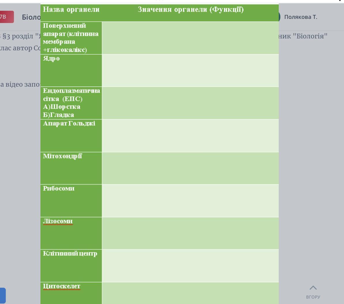 6.Лізосоми-розщеплення внутрішньо- та позаклітинних відходів, та старих органел, знищення патогенних мікроорганізмів, забезпечення клітини поживними речовинами.