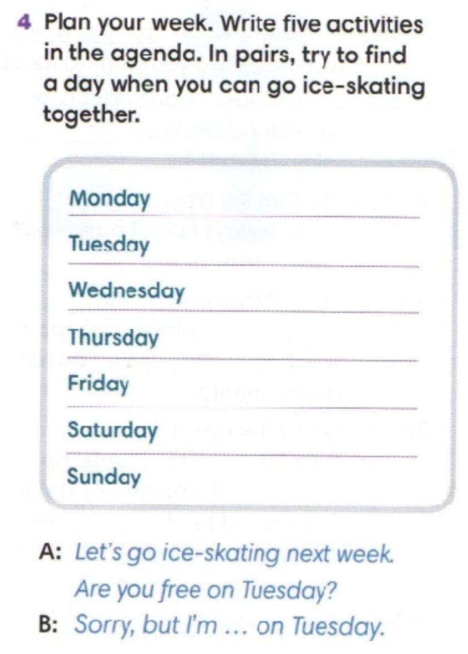 Ответ: Monday - go to cinema
