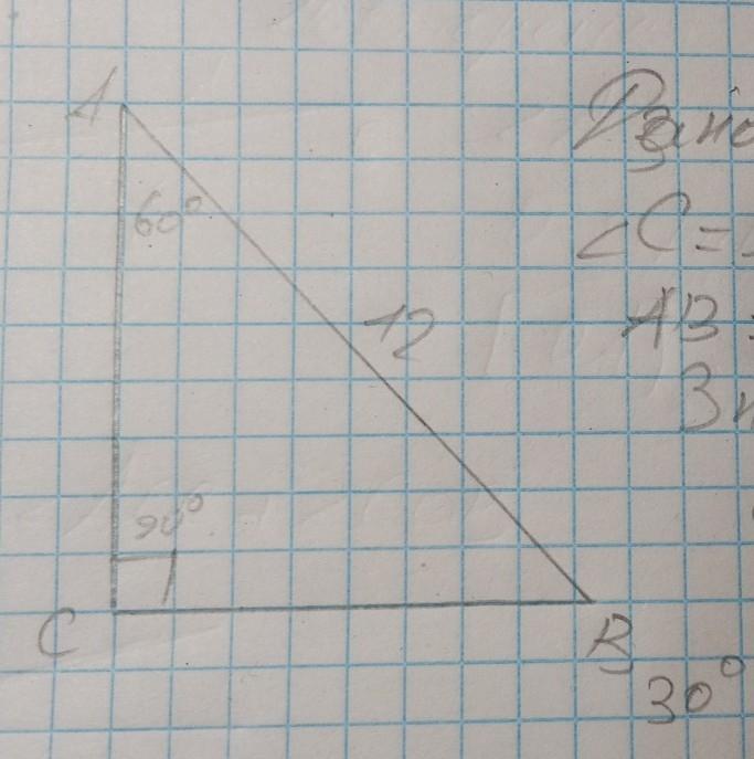 Дано: ∆ABC,∠ C=90°, AB=12 см, ∠A=60°
