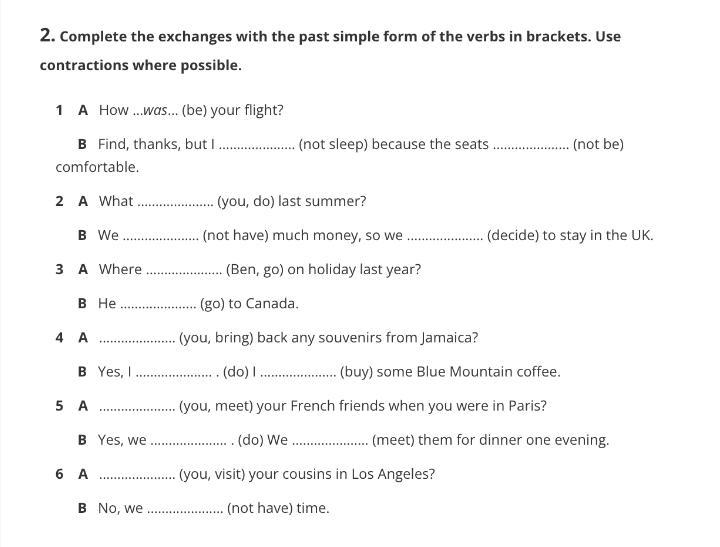 1. B Fine, thanks, but I haven't slept because the seats were not comfortable