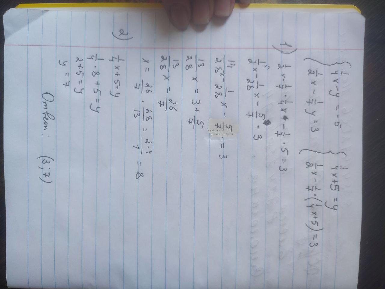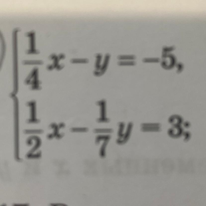 x-4y=-20. x=-20+4y подставим в 7x-2y=42=>