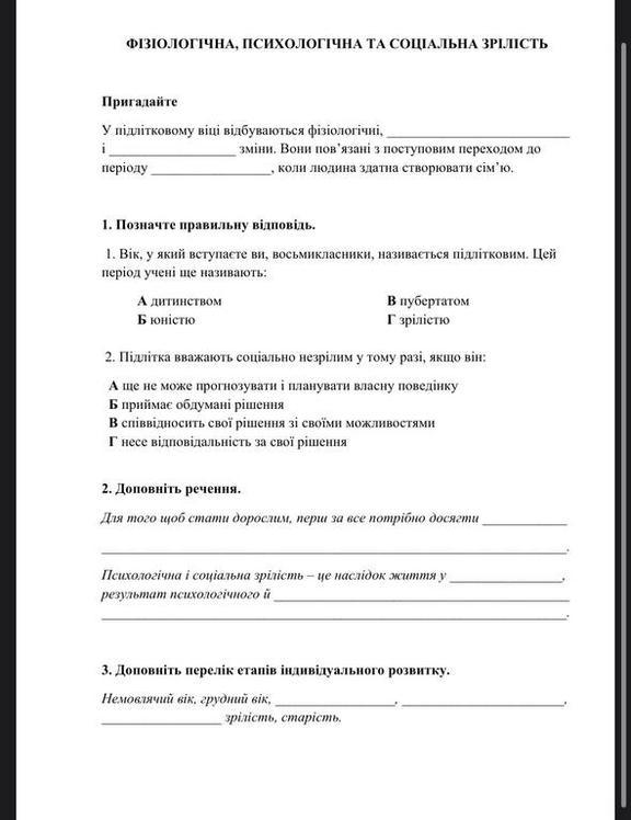 Відповідь:1: соціальні і психологічні зміни(етап зрілості)