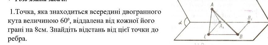 Для нахождения расстояния от точки, которая находится внутри двугранного угла (в данном случае, треугольника) до его ребра, мы можем воспользоваться геометрическими свойствами треугольника и угла.