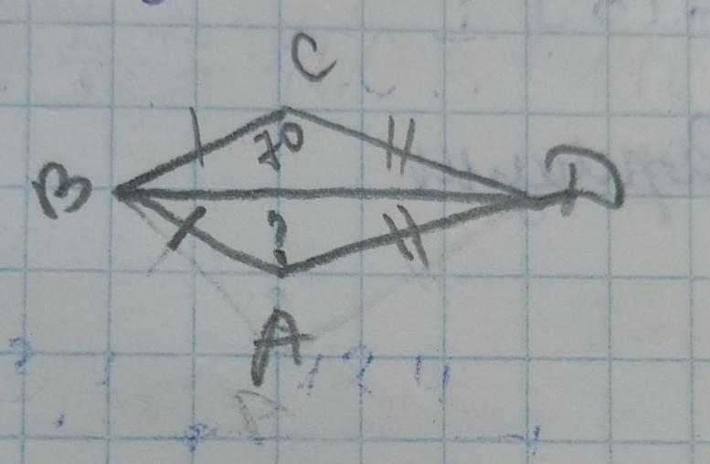 проведемо діагональ ВД. роздивимося трикутники ВСД та АВД. ВС=ВА, СД=АД, ВД спільна. значить трикутники ВСД та АВД рівні за третьою ознакою рівності. відповідно кут А= куту С=70⁰