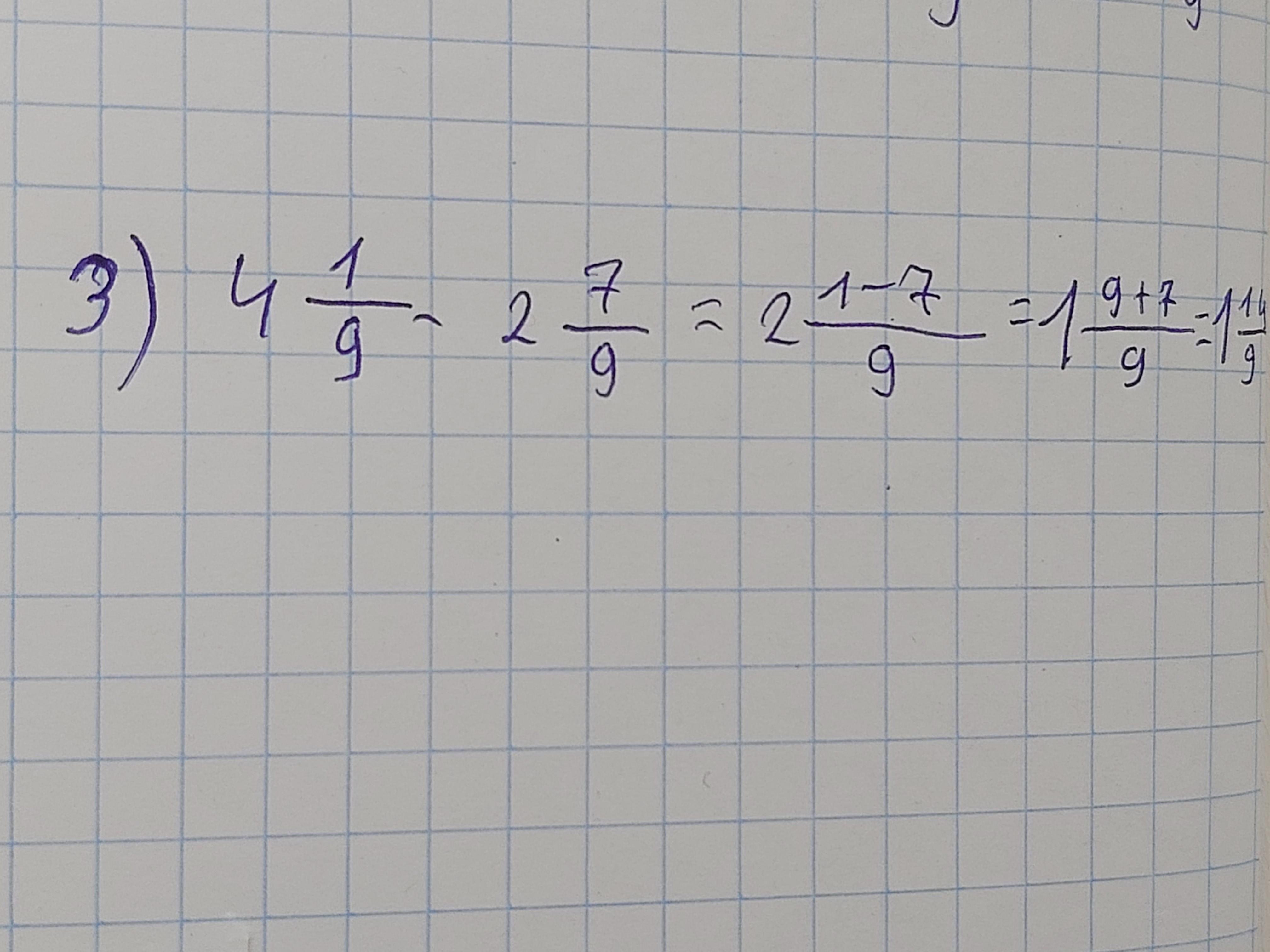 З)4 1/9-2 7/9= 2 1-7/9=1 9+7/9= 1 14/9