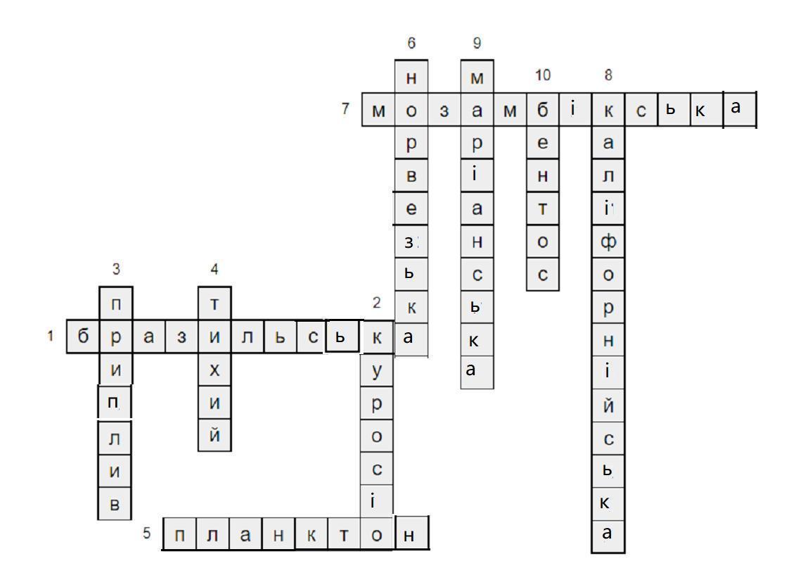 Кросворд на тему Світовий океан дан нижче у додатку
