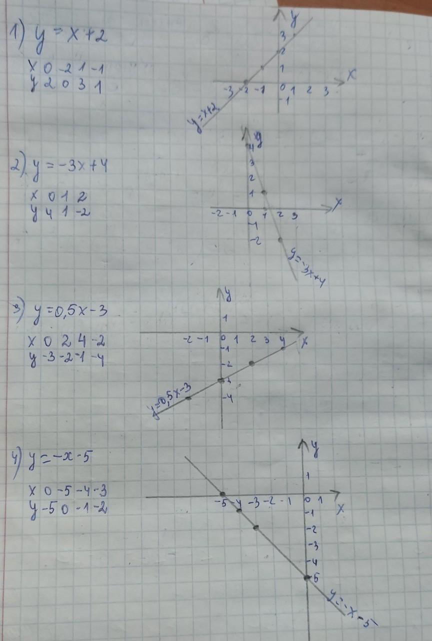 784. Побудуйте графік лінійної функції: 1) y=x + 2; 2) y = -3x + 4; 4) y =-x- 5) y = -1; 1; 3) y = 0,5х - 3; 6) y =-x + 2,5.