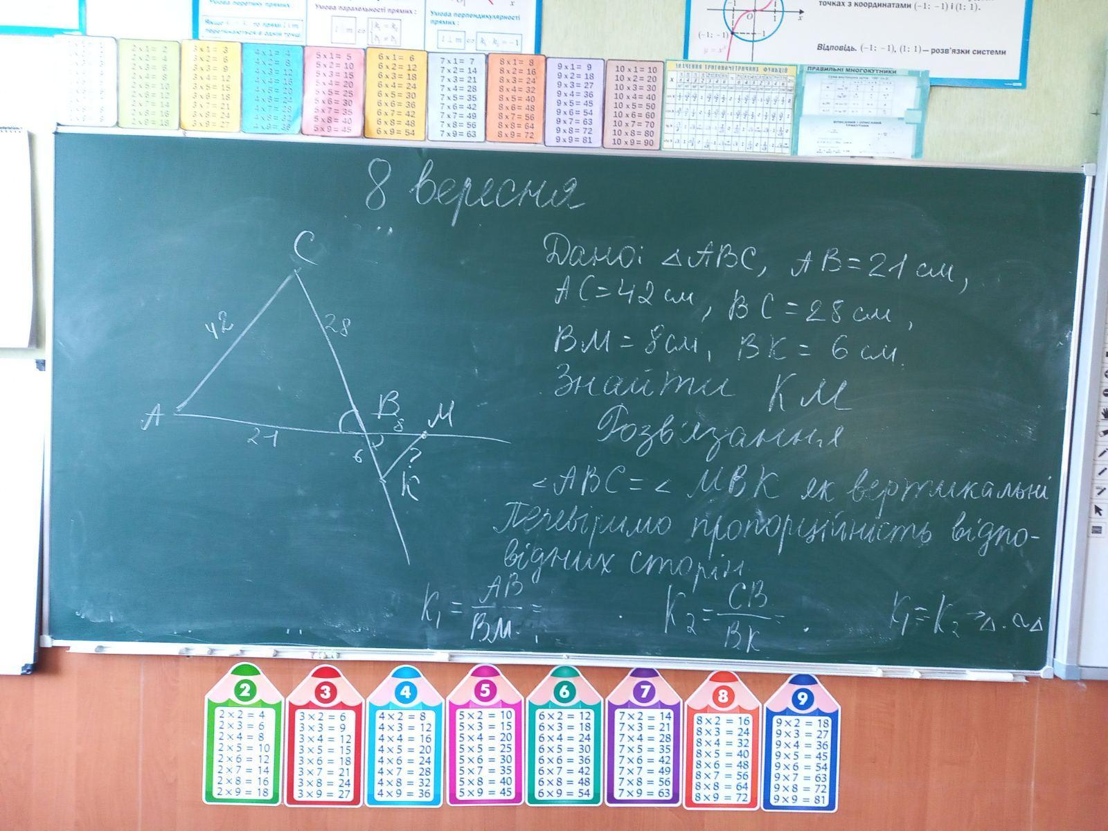 ∠АВС = ∠КВМ як вертикальні кути . Перевіримо пропорційність