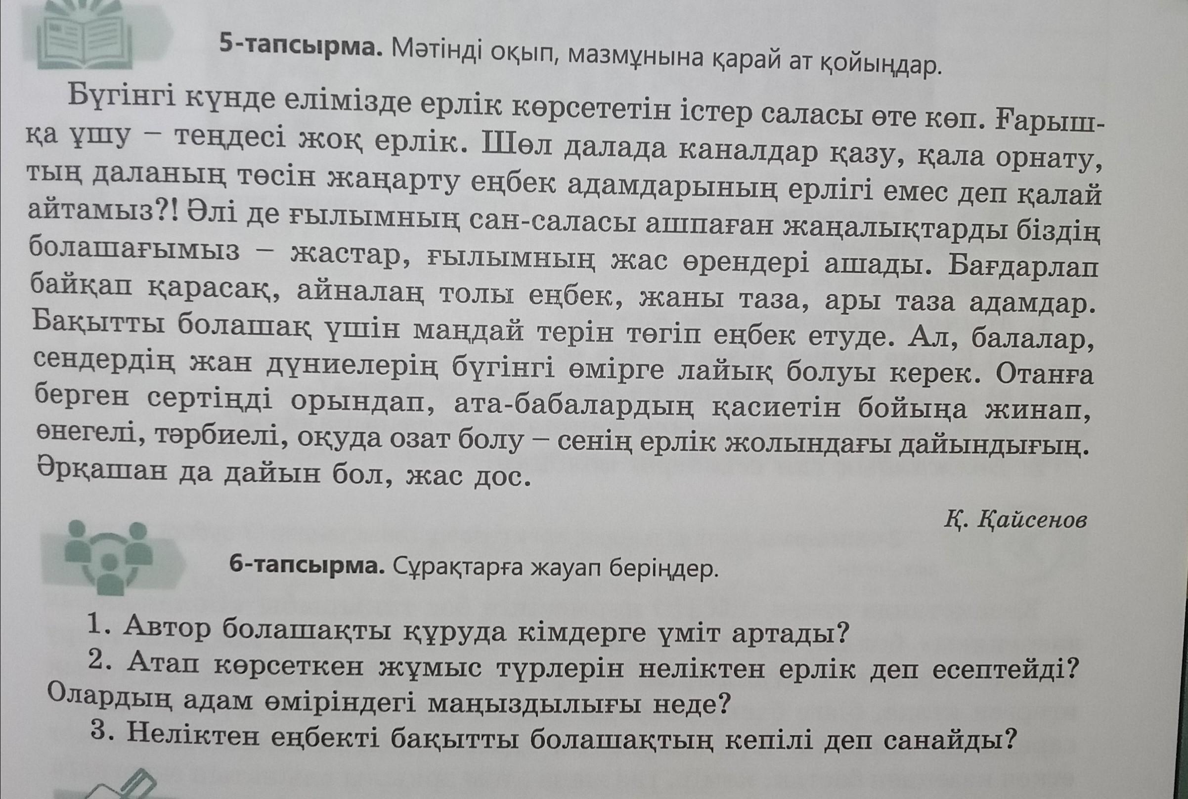 1)Автор болашақты құруда болашақ ұрпағымызға үміт артады.