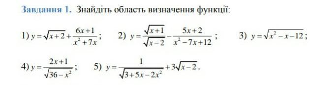 Завдання 1. Знайдіть область визначення функції: