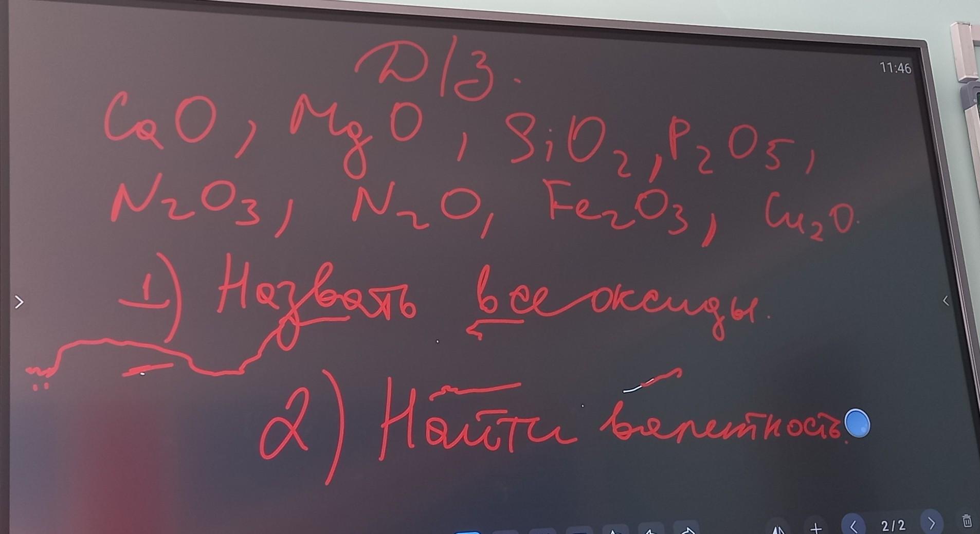 1.оксид кальция, оксид магния, оксид кремния , оксид фосфора, оксид азота, оксид ферума, оксид купрума; 2.са2о2, мg2o2 , si4o2 , p5o2 N3o2, N1o2 , fe3o2 , cu1o2