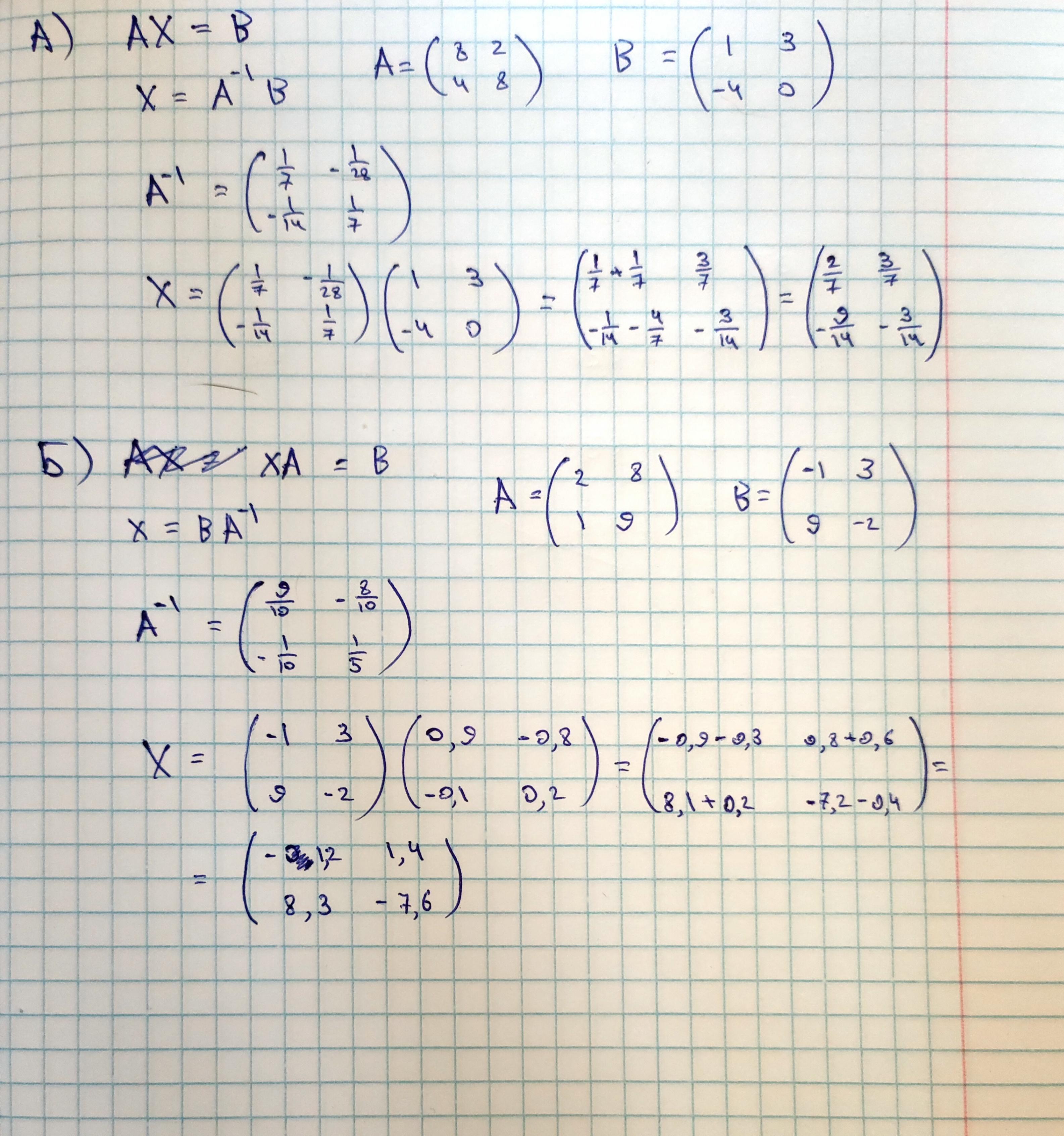 На 1 фотографии представлено решение задание. На 2 фотографии нахождение обратной матрицы (А^(-1))
