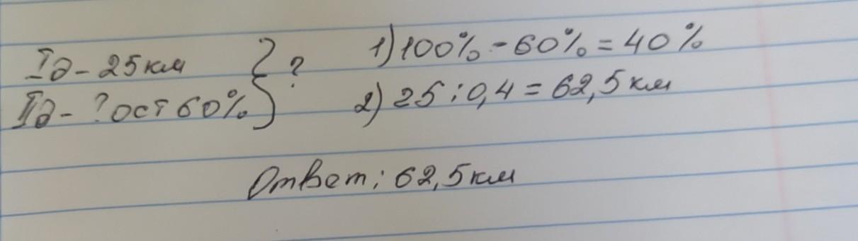 Выразим x = (25 * 100) / 40 = 62.5км