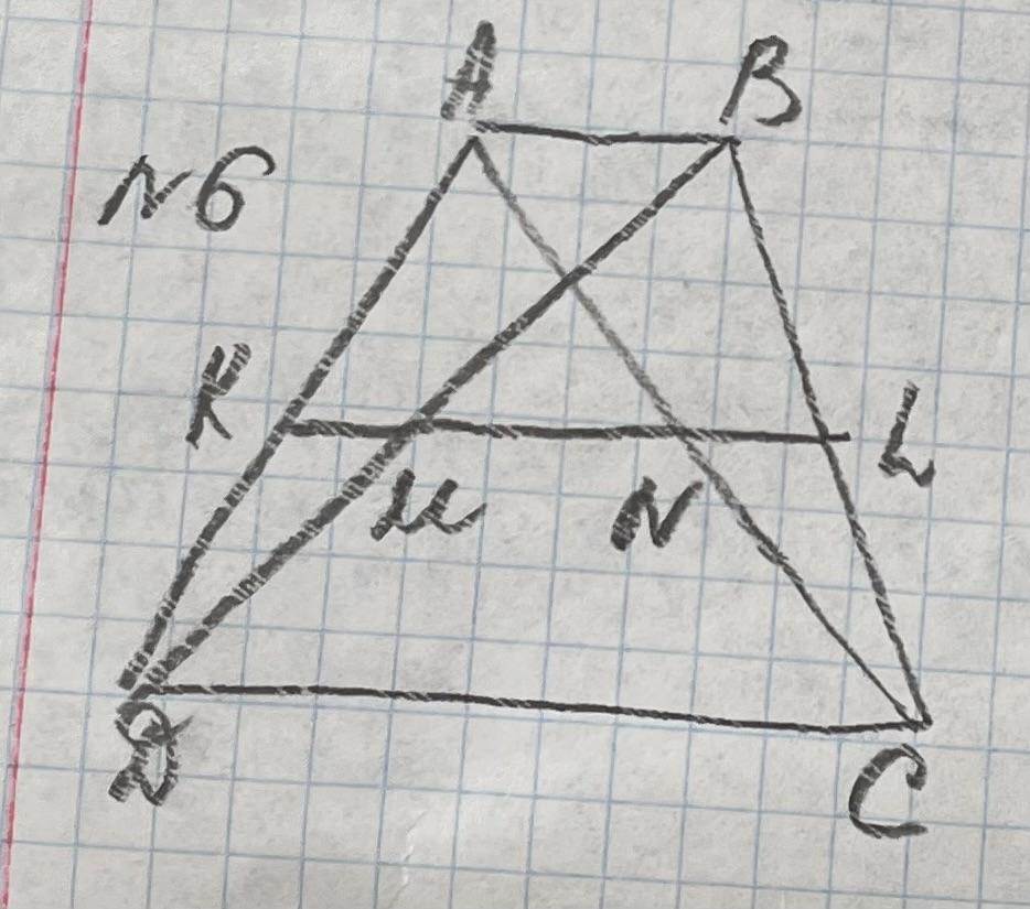 KL=(AB+CD)/2=(a+b)/2 середня лінія трапеції.