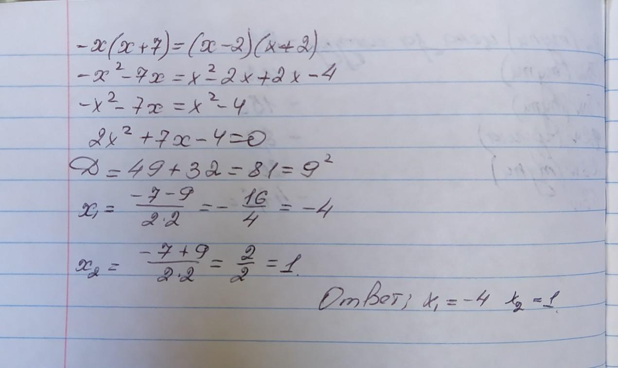 -x (x + 7) = (x - 2) (x + 2)