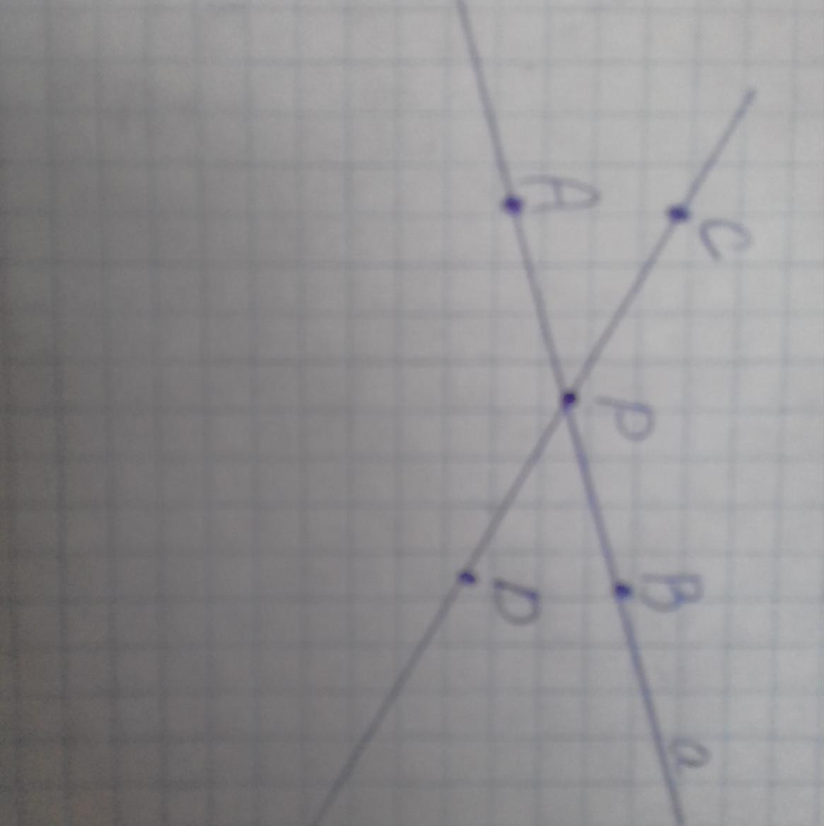 2. На прямой а отметьте точки А и В. Вне прямой а по разные стороны от нее отметьте точки С и D так, чтобы ни точка А, ни точка В не принадлежали прямой CD. Найдите точку пересечения прямой CD и прямой а. Обозначьте ее бук- вой Р. Сколько всего отрезков изображено на вашем рисунке?