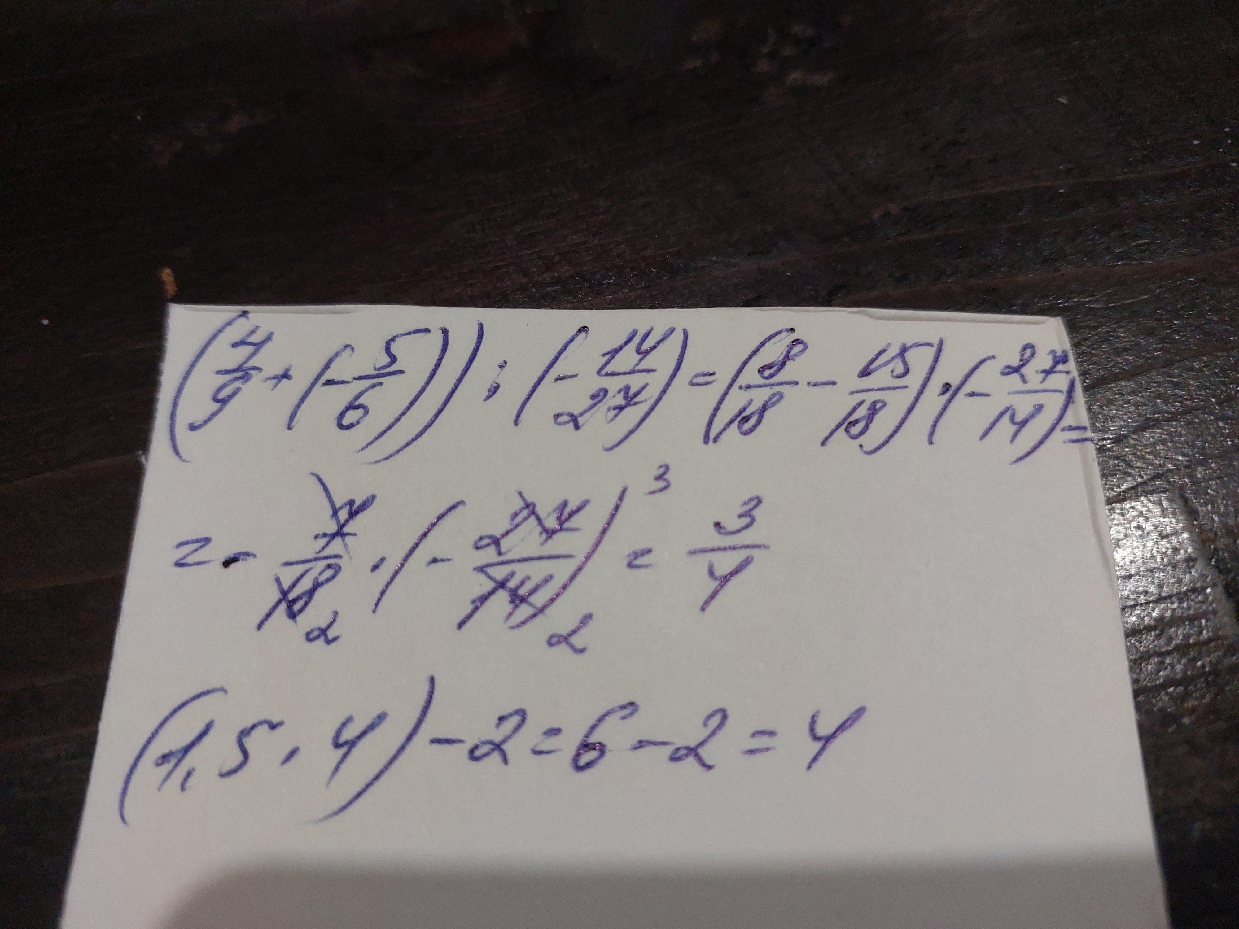 1)Частка від ділення суми чисел 4/9 і -5/6 на число -14/27 . 2) різниця добутку чисел -1.5 і 4 та числа 2 . пжжжжж срочнооооо