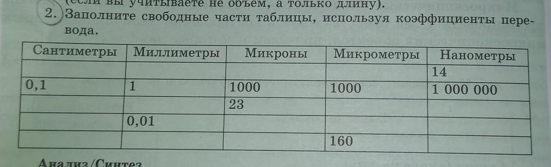 Заполните свободные части таблицы, использую коэффициенты перевода, пожалуйста