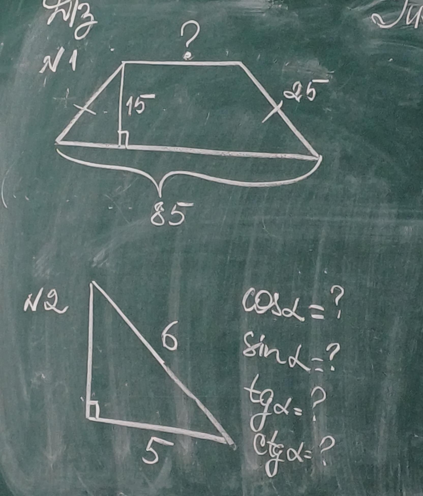 1. Опустим еще одну высоту трапеции, и обозначим за х полученный катет , тогда согласно теореме Пифагора: х= .И тогда обозначим за у меньшее основание трапеции: у=85-2*20=85-40=45