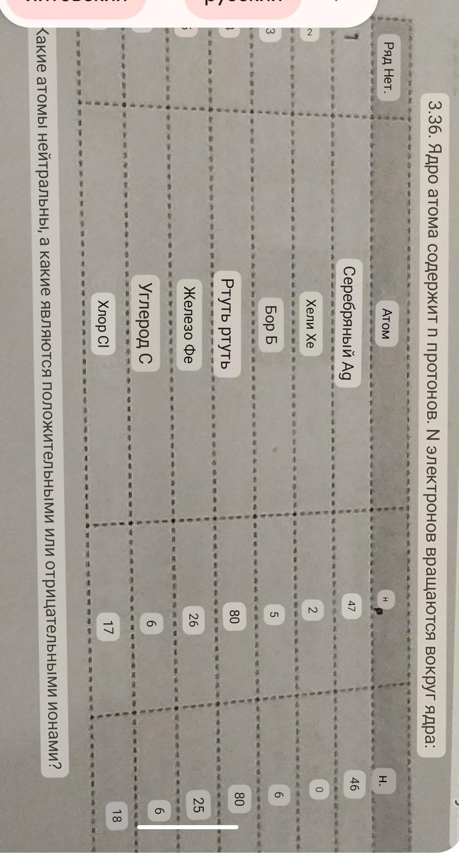Отрицательные ионы(анионы):Cl,B,( у них число электронов выше числа протонов).