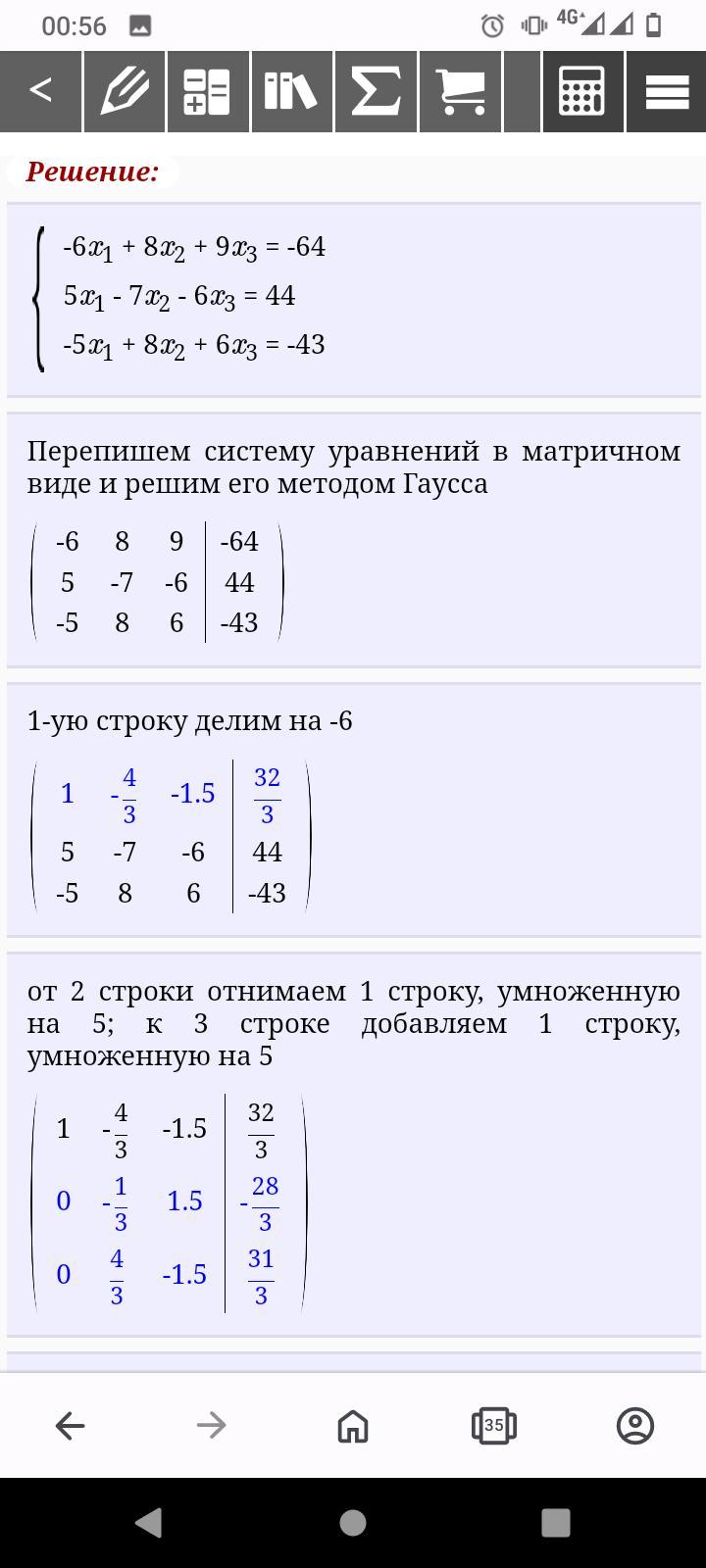 Из 1 строки вычитаем 2 строку, умноженную на -4/3:
