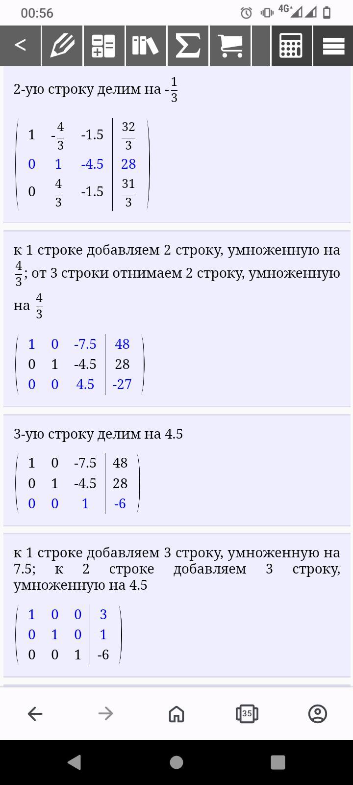 Из 3 строки вычитаем 2 строку, умноженную на 4/3: