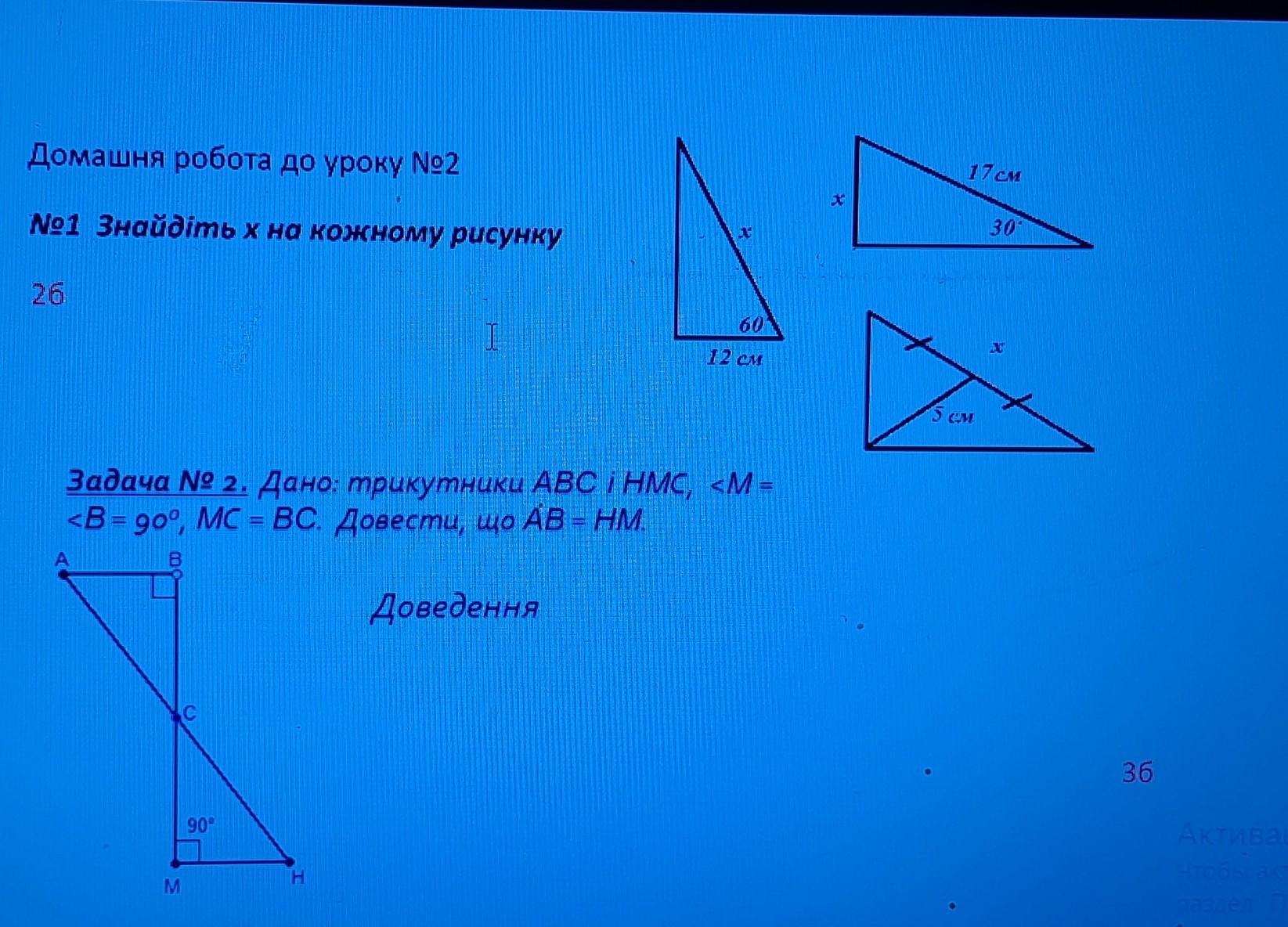 2)Х=17:2=8,5,т к катет Х лежит напротив угла 30*
