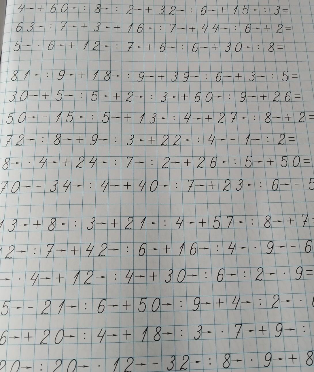 для начала в примере нужно зделать деление [умножения] потом добавление [вычитание]