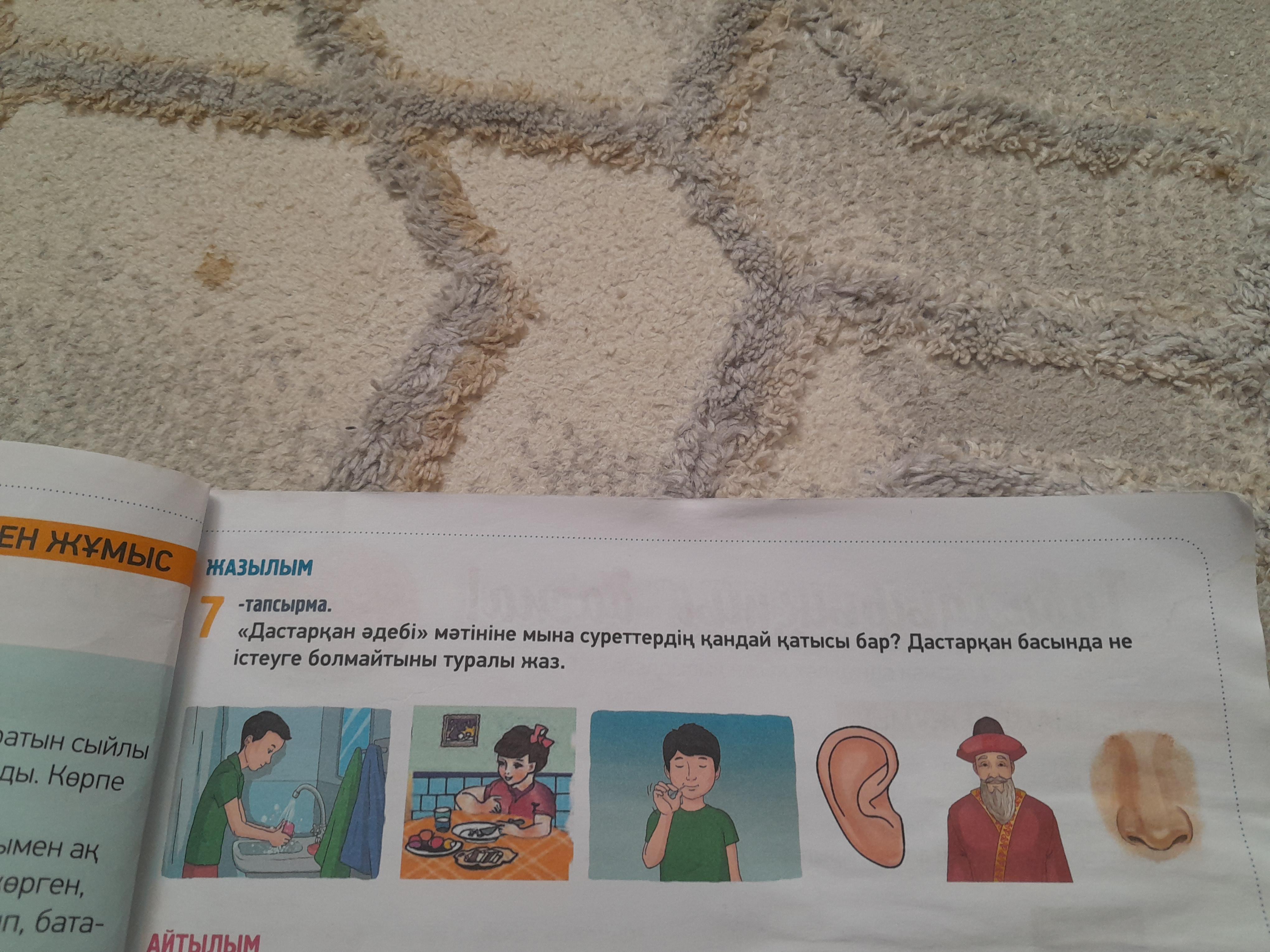 Дастарқан әдебі мәтініне мына суреттердің қандай қатысы бар? Дастарқан басында не істеуге болмайтыны туралы жаз