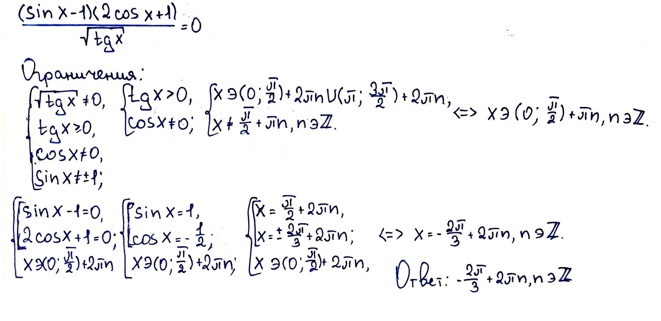 (sinx-1)(2cos+1)/корен tgx=0