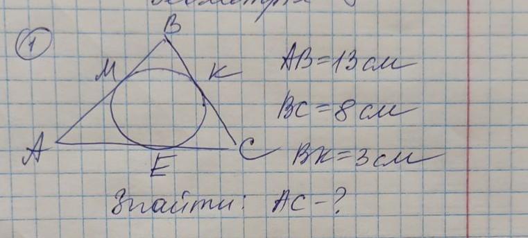 КС=ЕС=5см (дві дотичні проведені з однієї точки С)