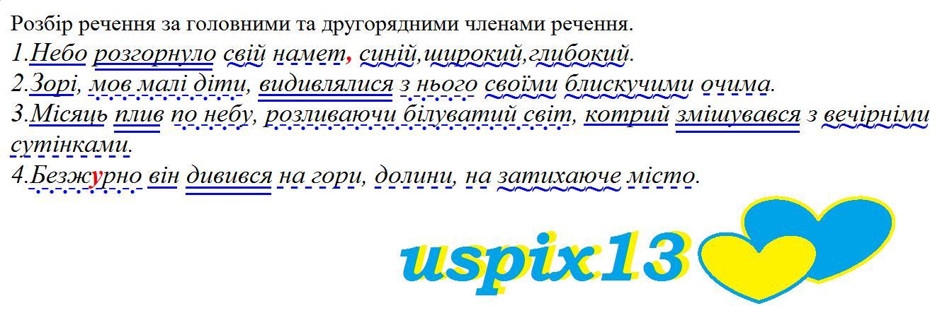 3.Місяць плив по небу,розливаючи білуватий світ, котрий змішувався з вечірніми сутінками.4.Безжарно він дивився на гори, долини, на затихаюче місто