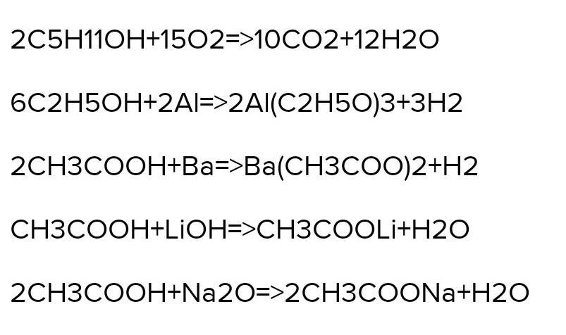 2C₅H₁₁OH + 15O₂ → 10CO₂ + 12Н₂О